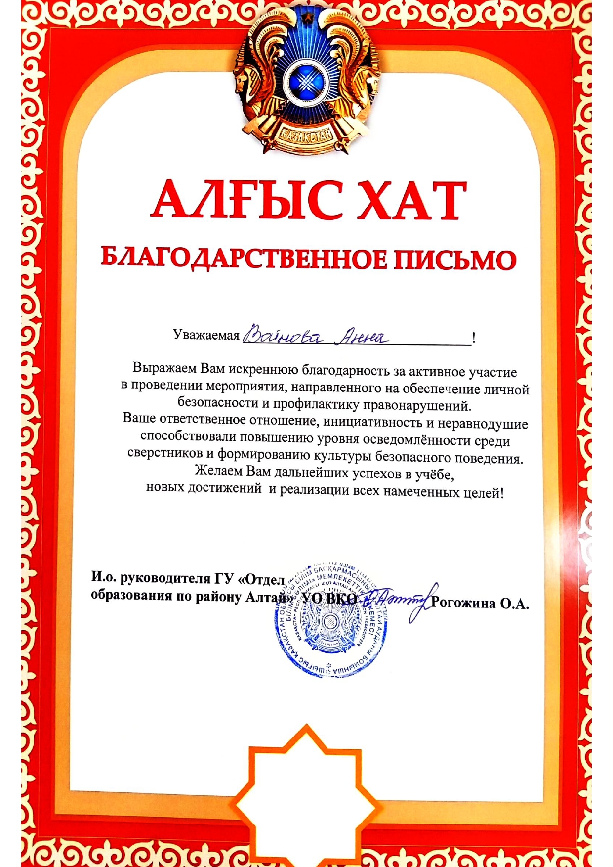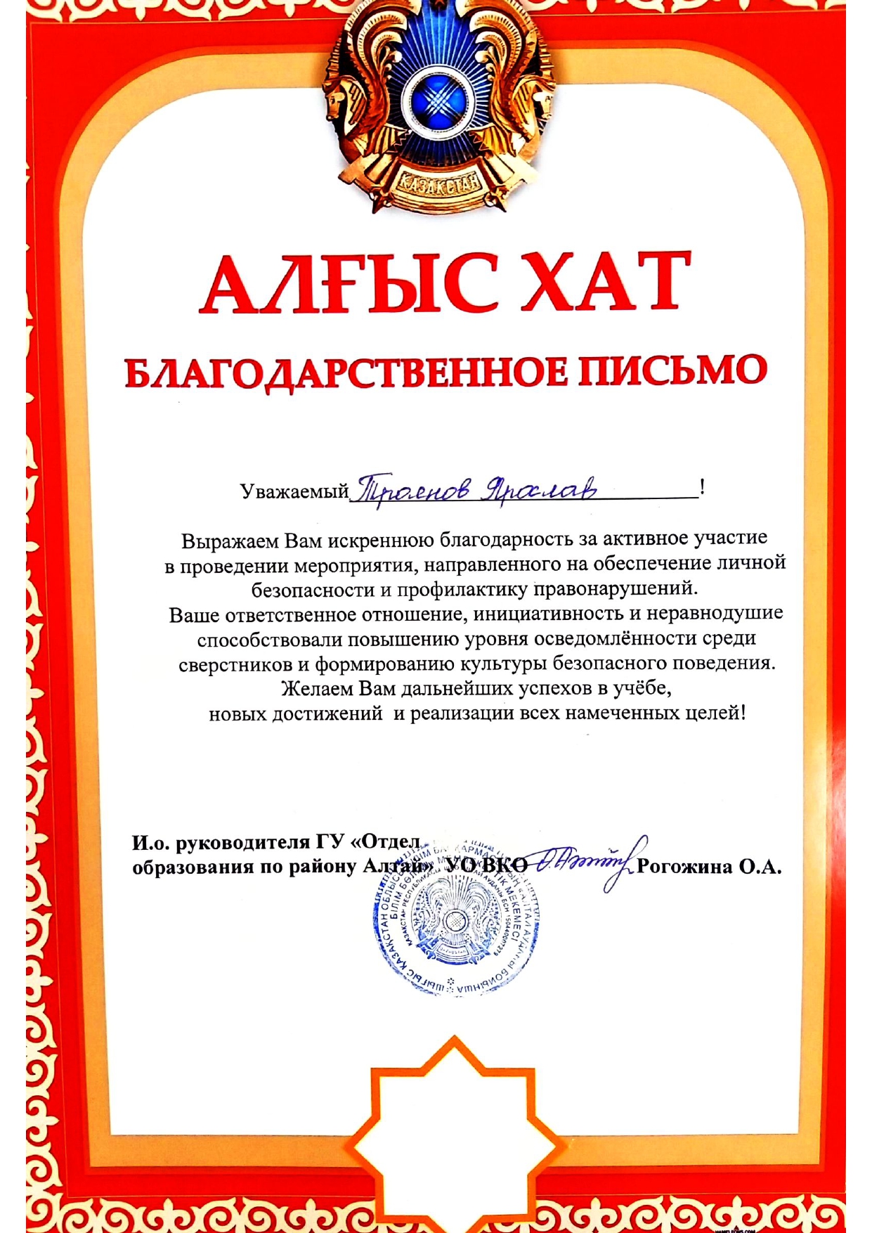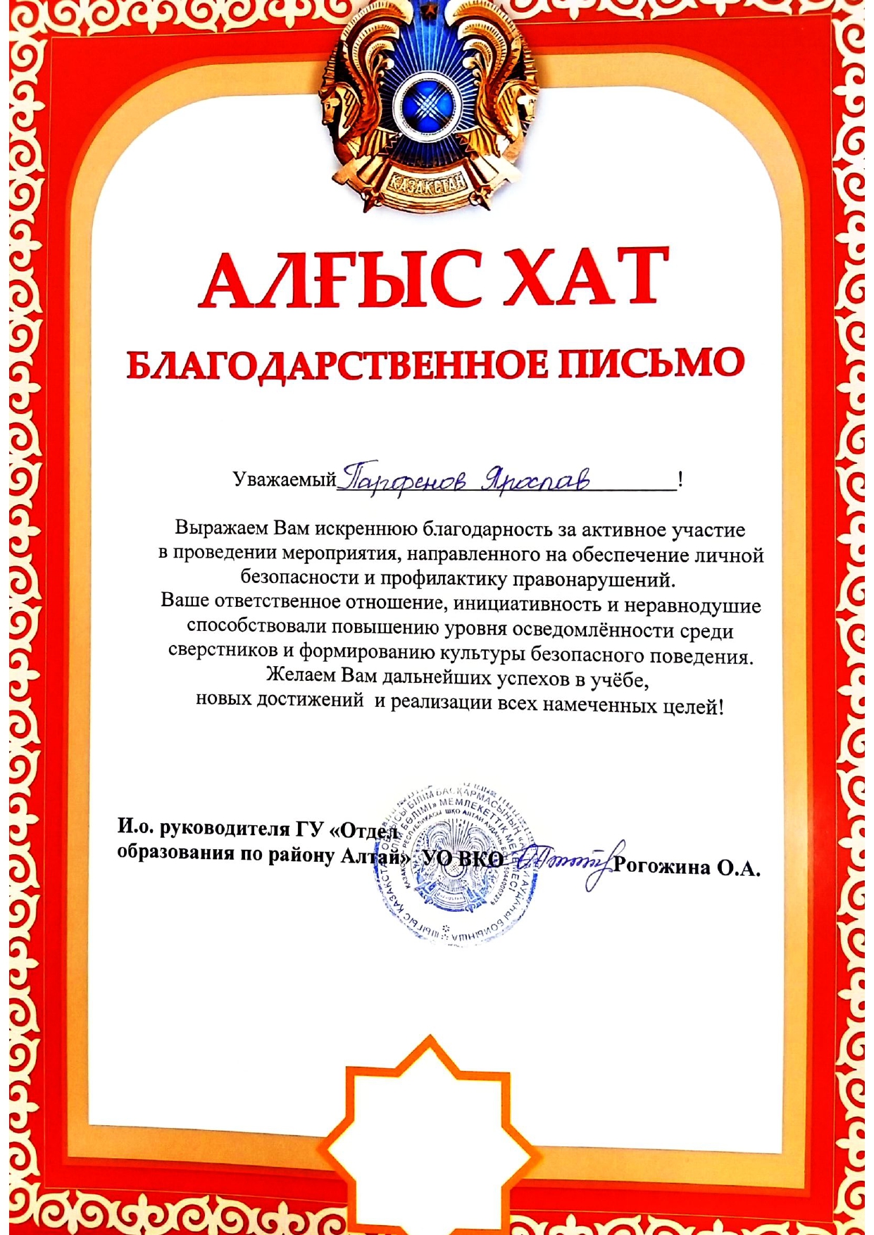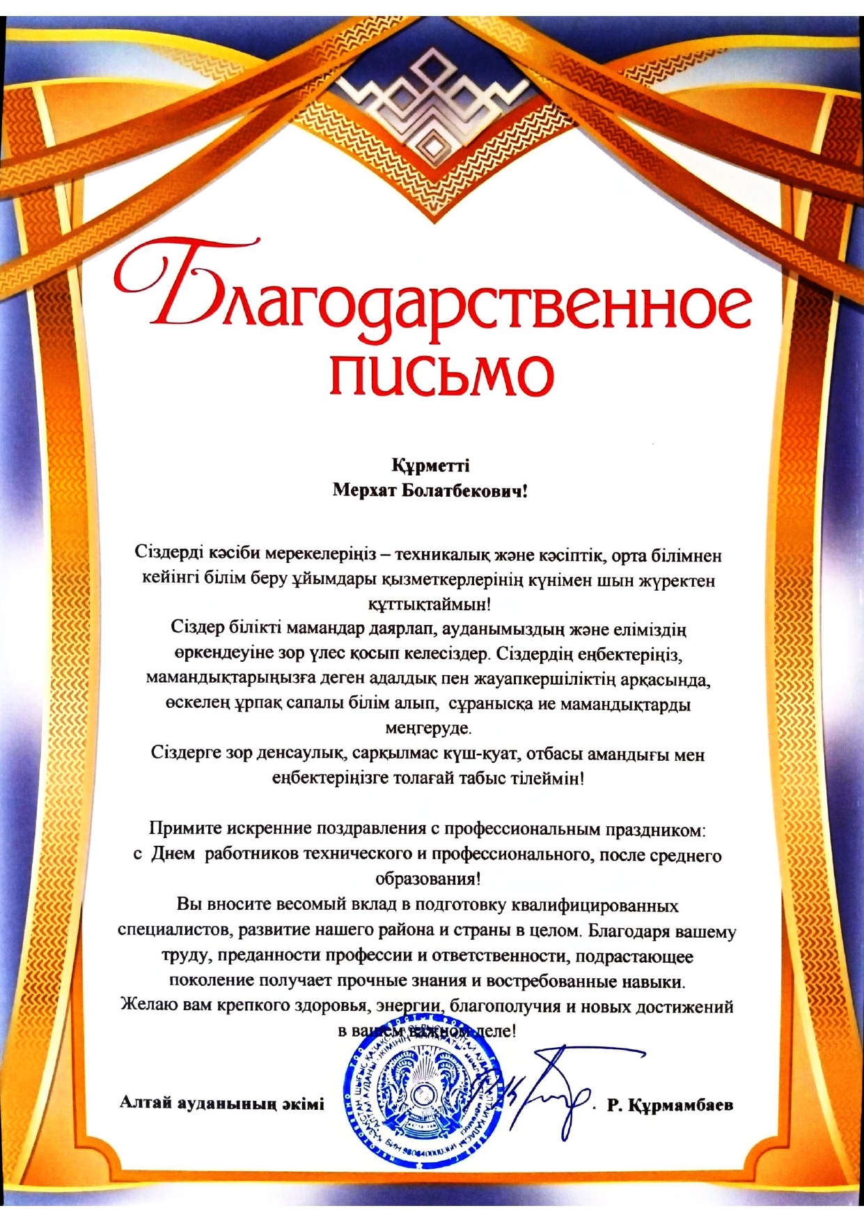 Благодарственные письма