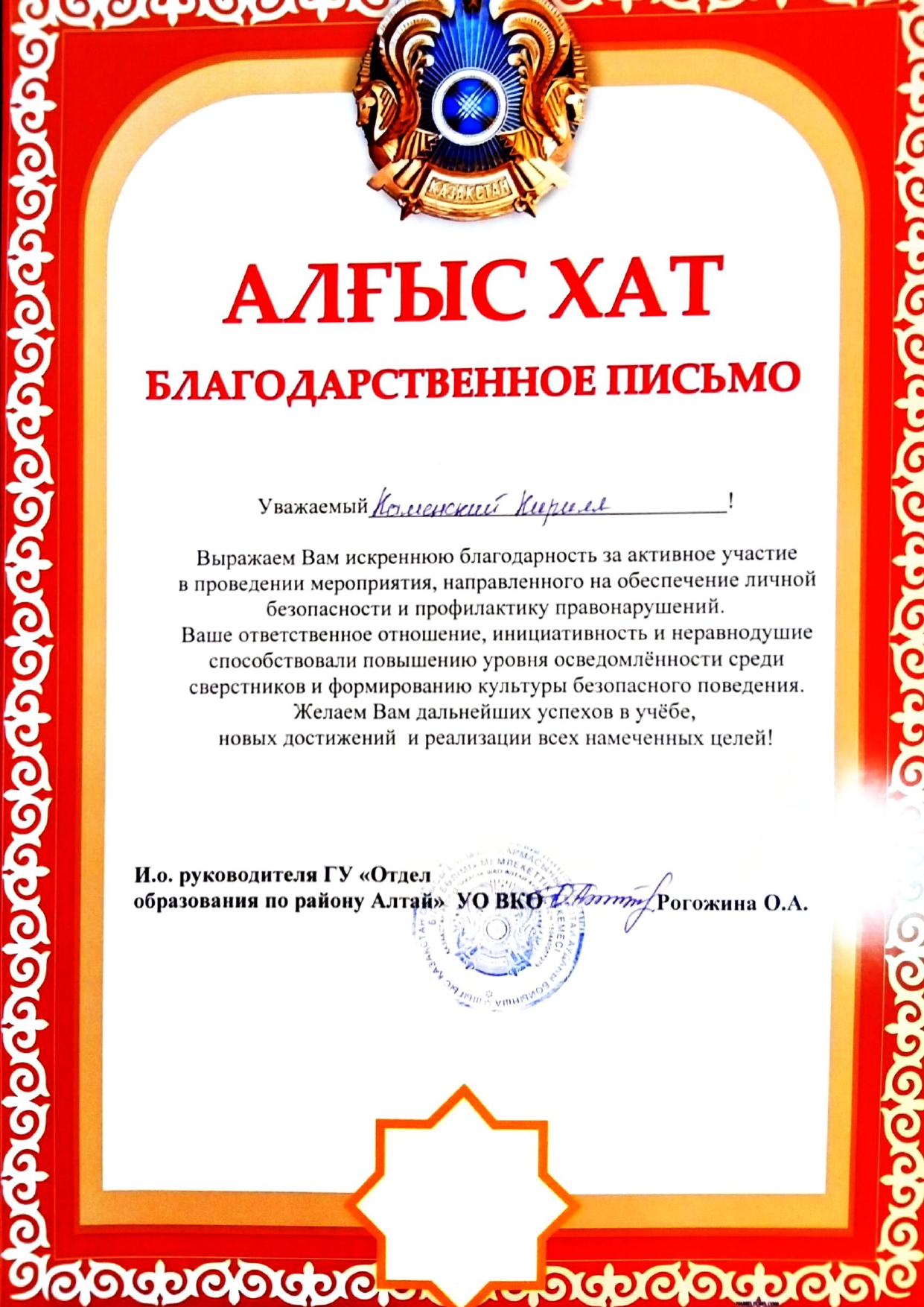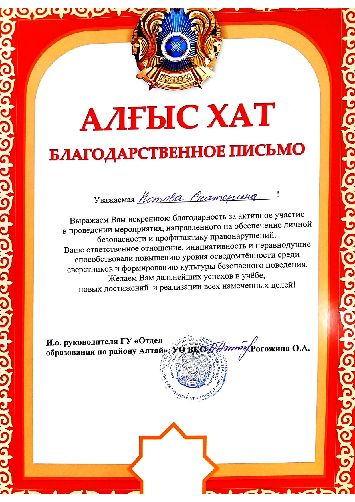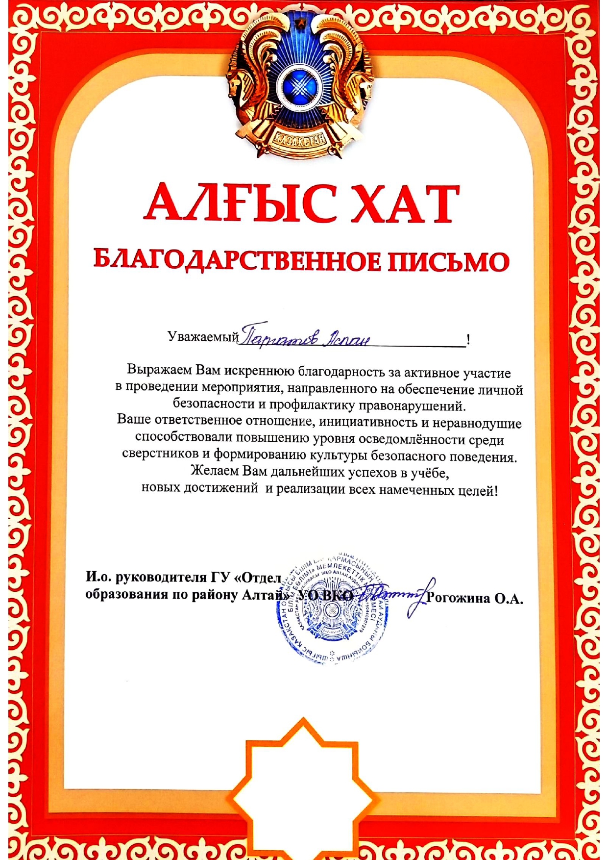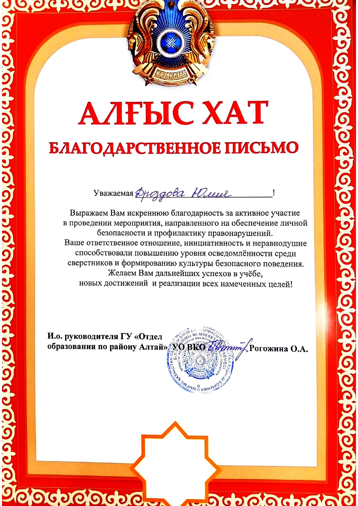 Благодарственные письма
