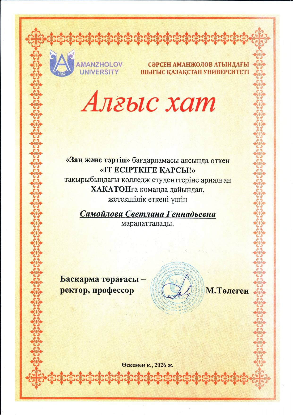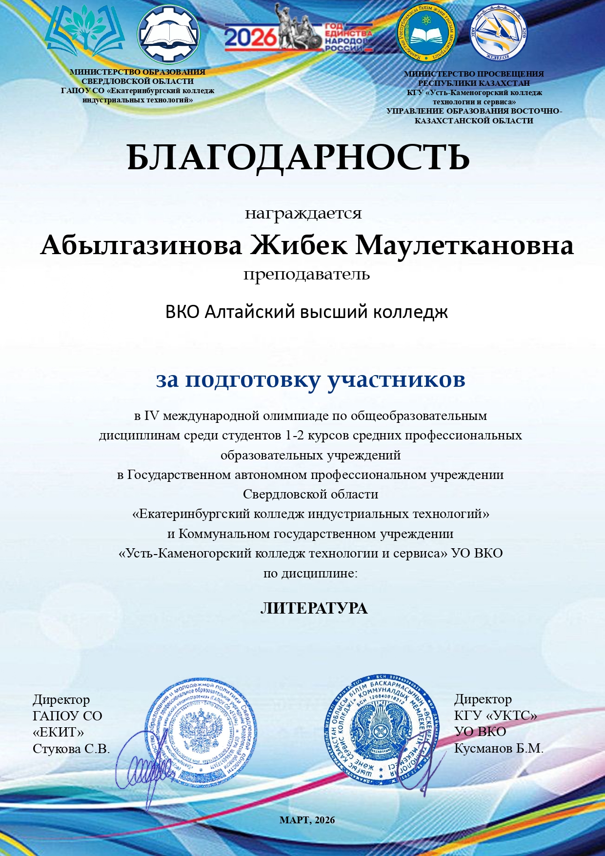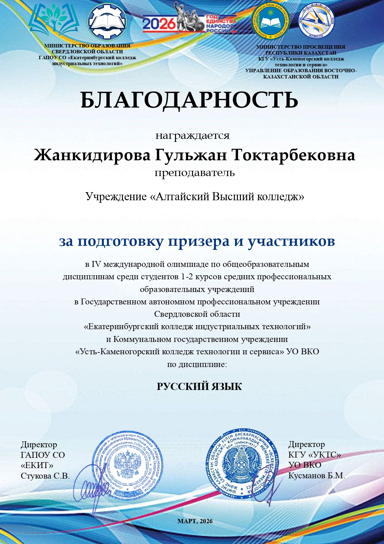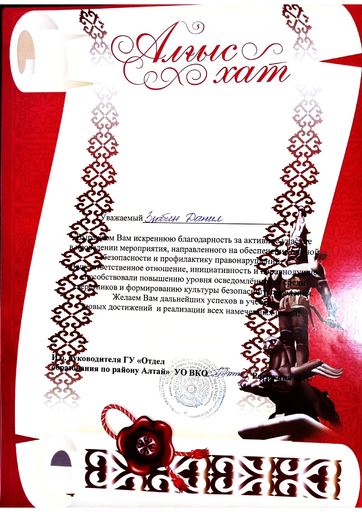 Благодарственные письма