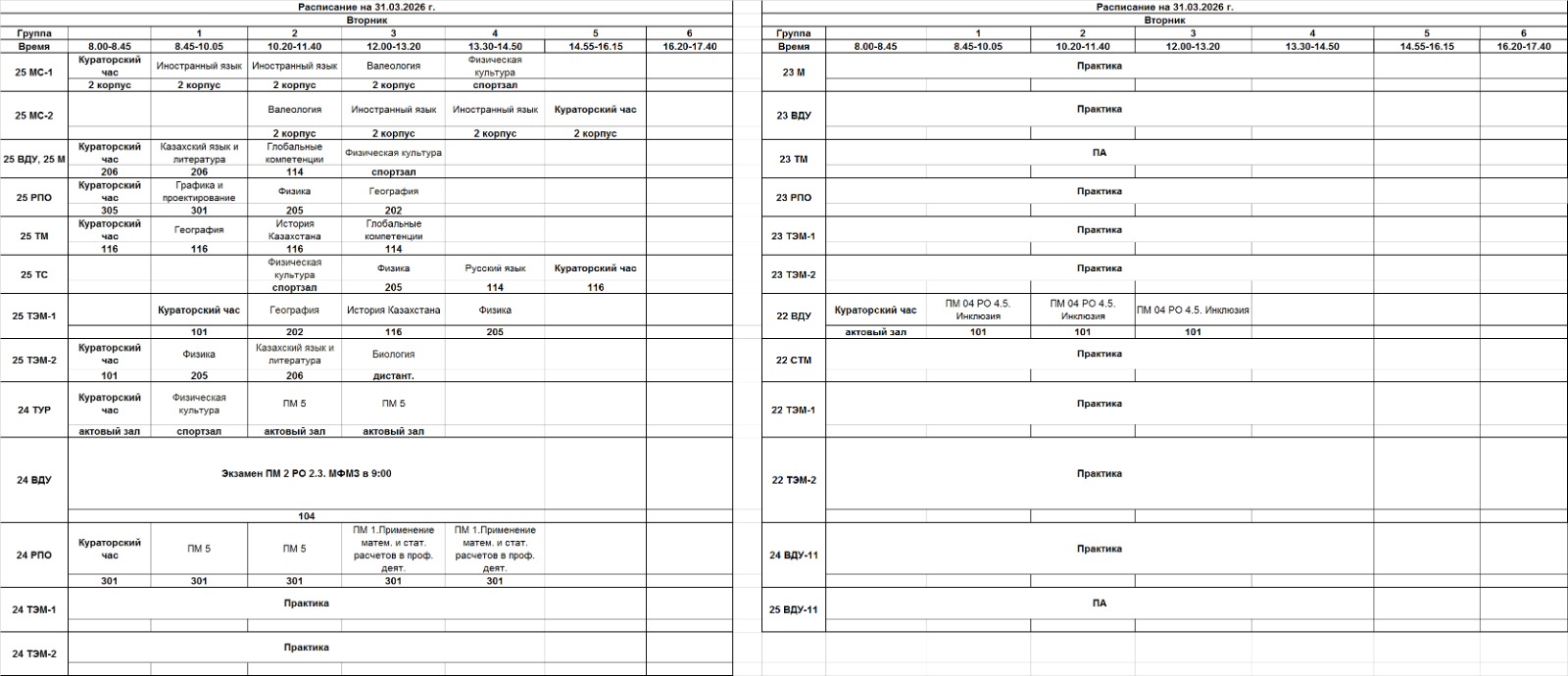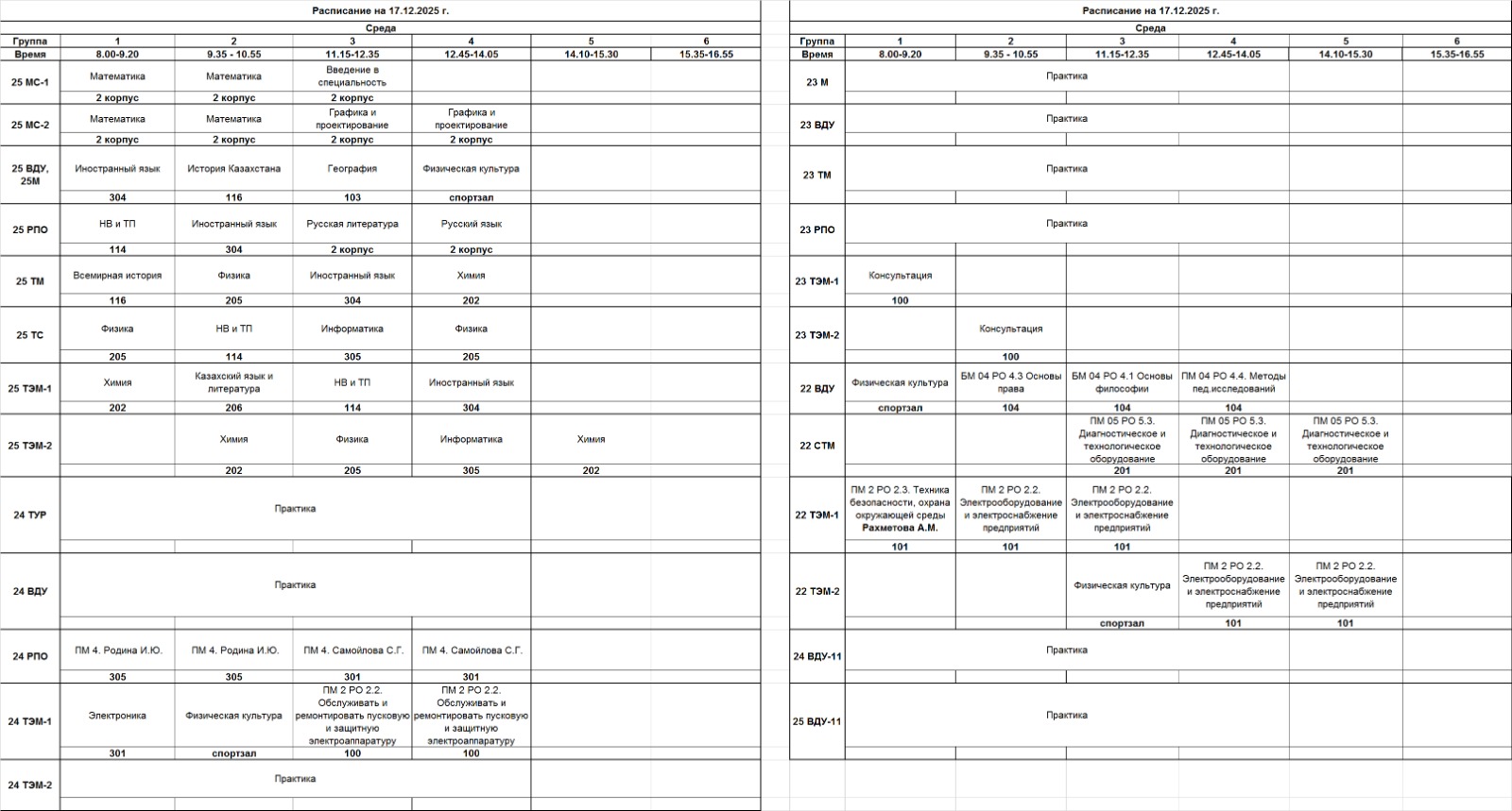 АВК | Очное отделение – расписание