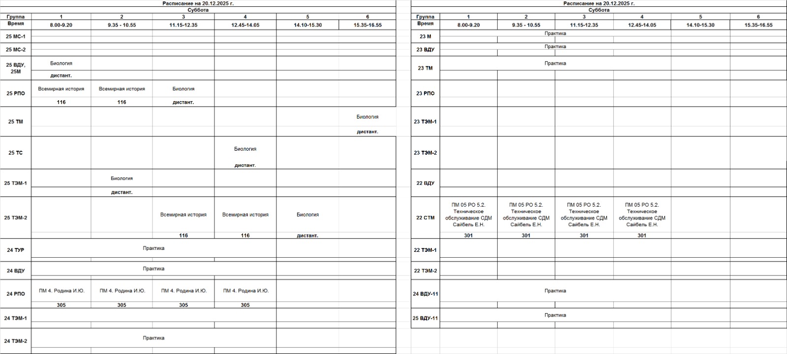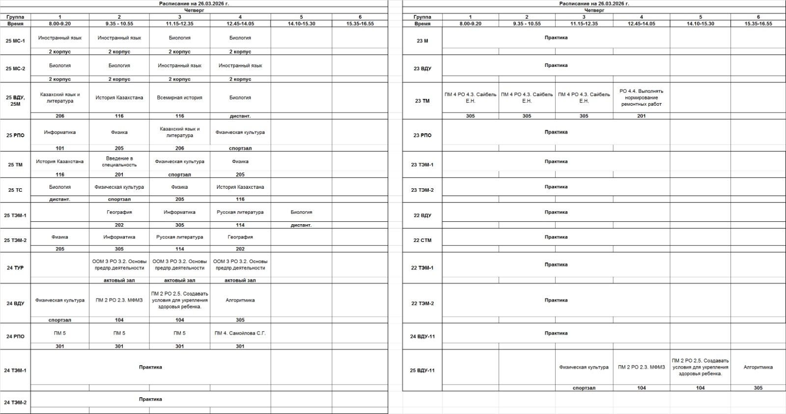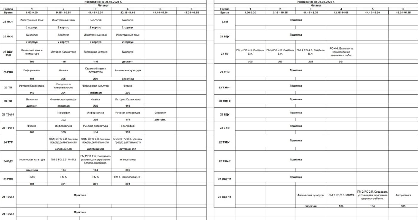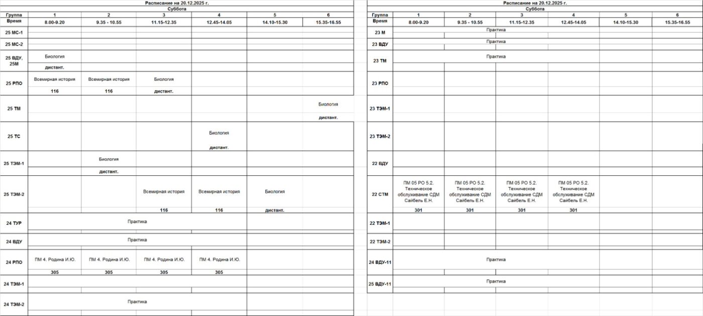 Очное отделение – расписание