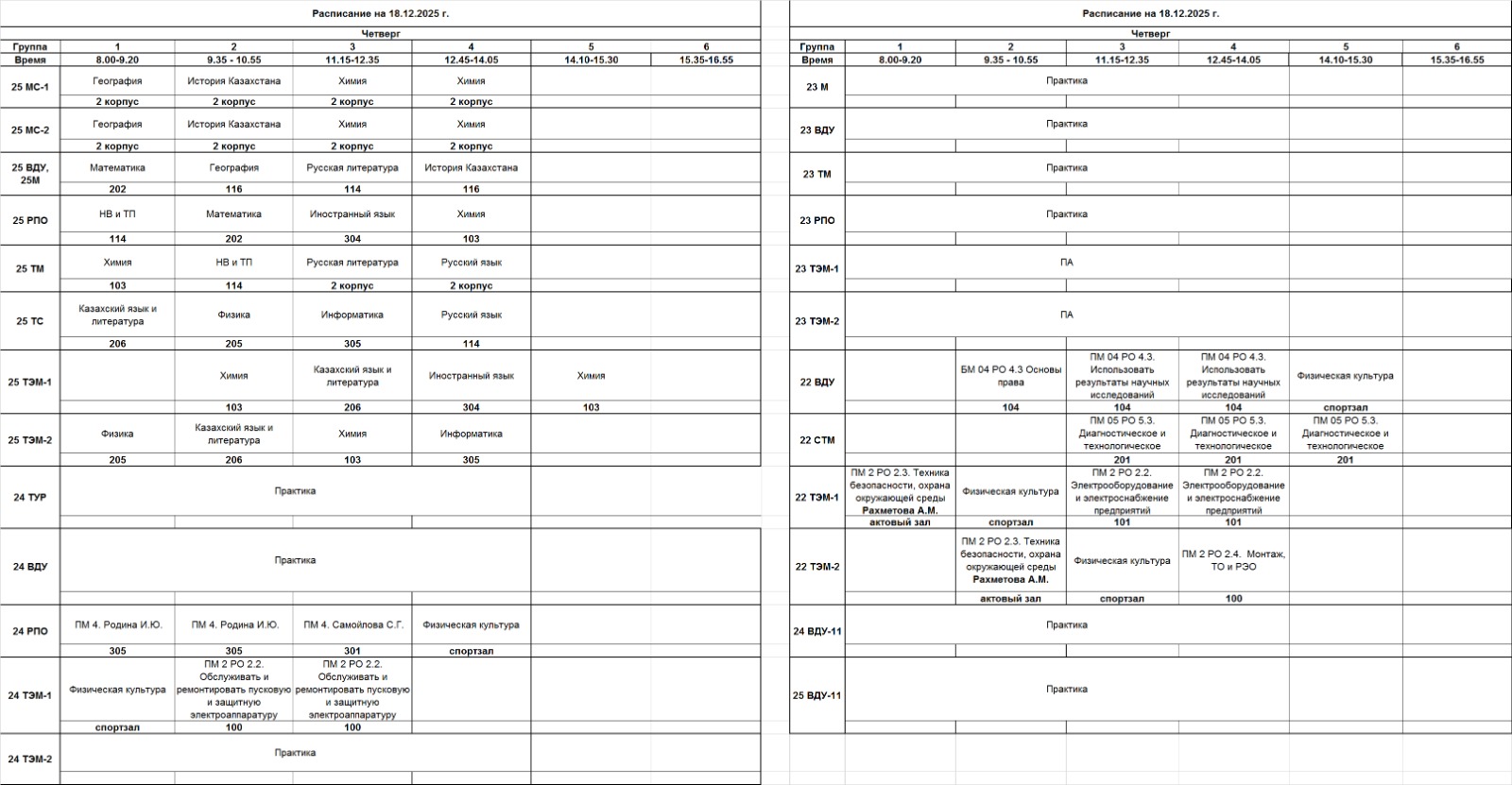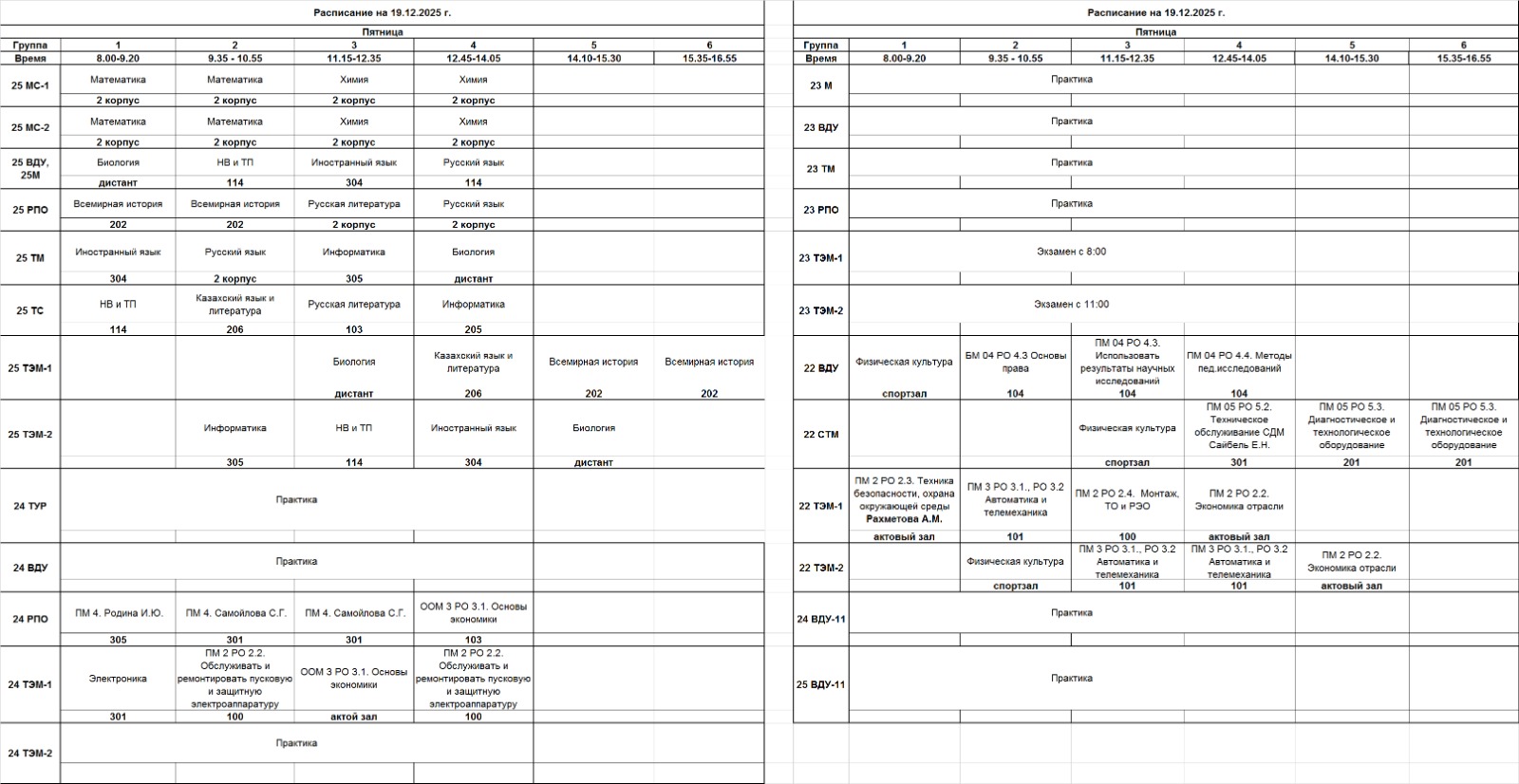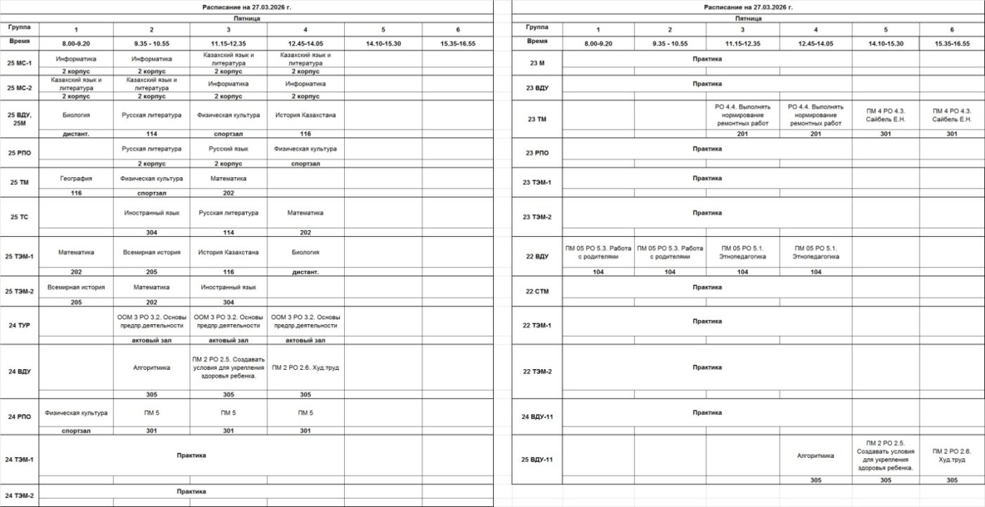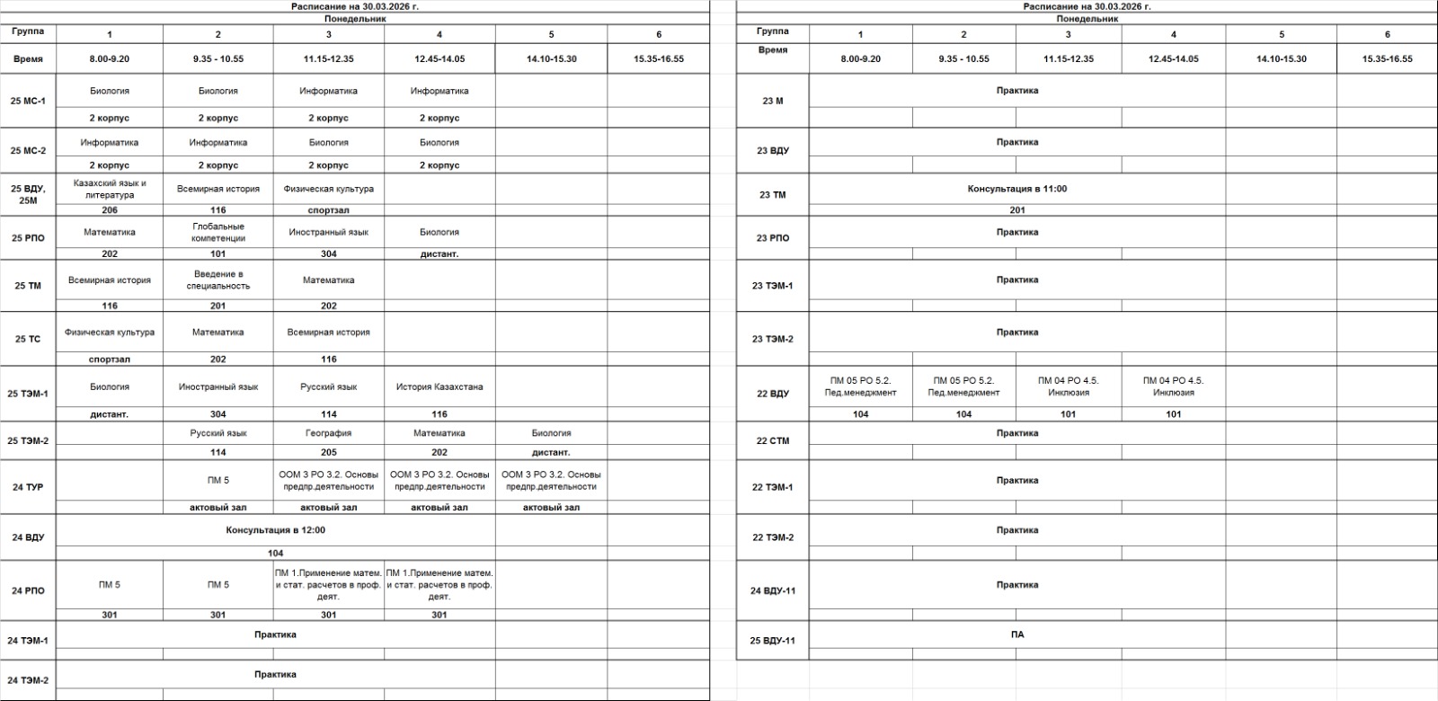 Очное отделение – расписание