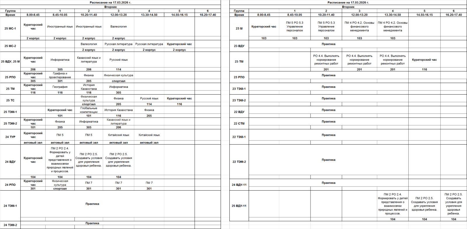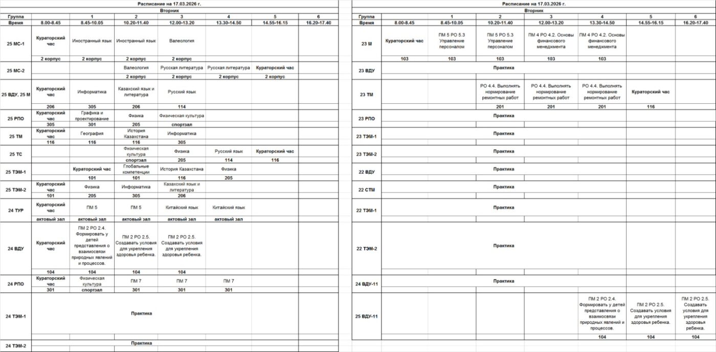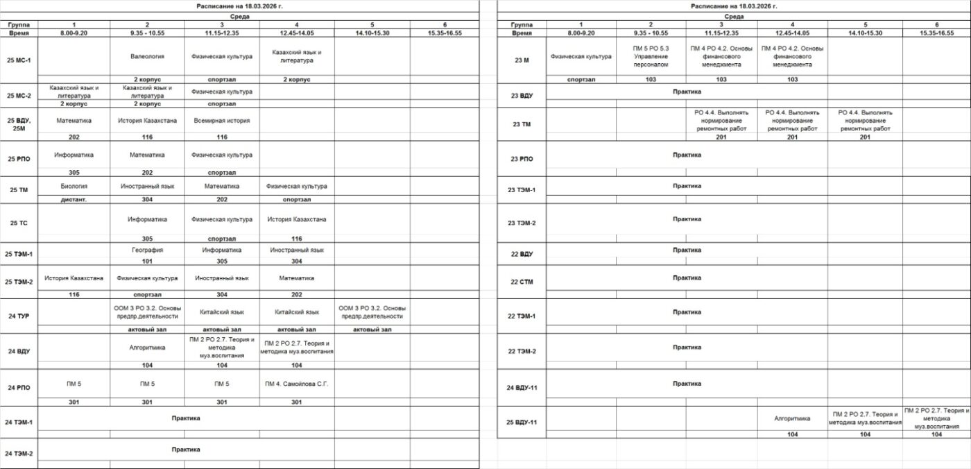 АВК | Очное отделение – расписание