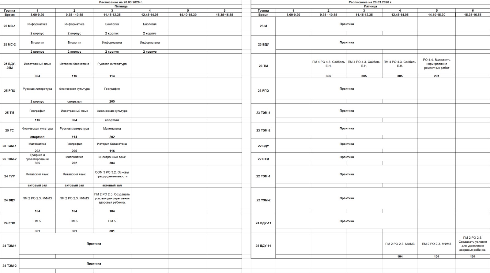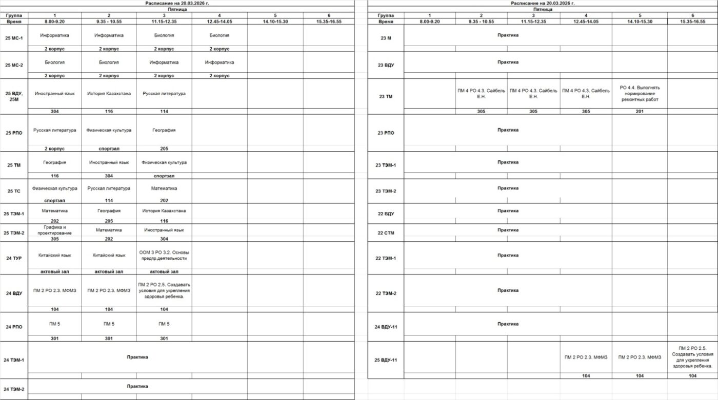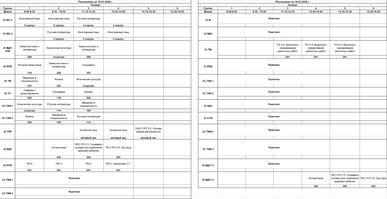 Очное отделение – расписание