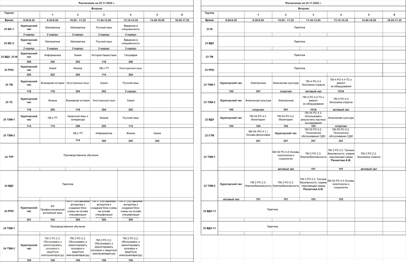 АВК | Очное отделение – расписание