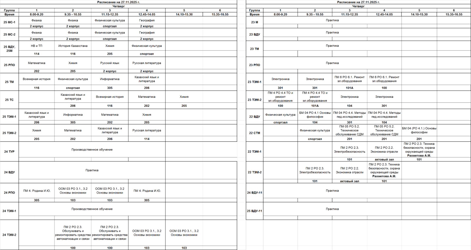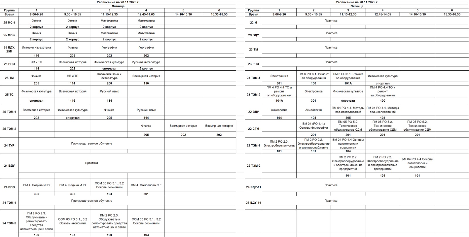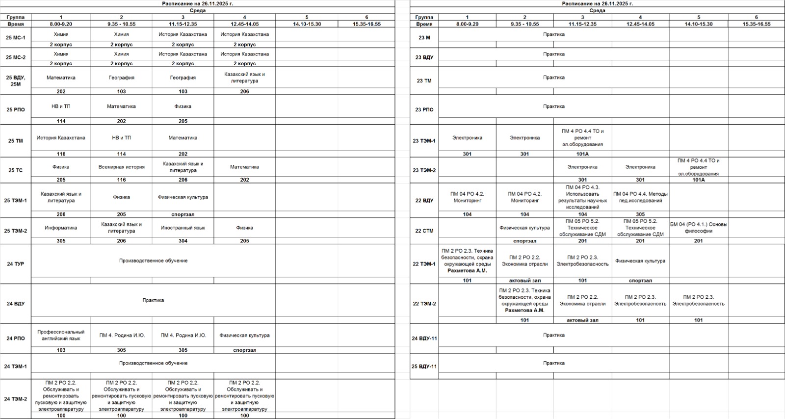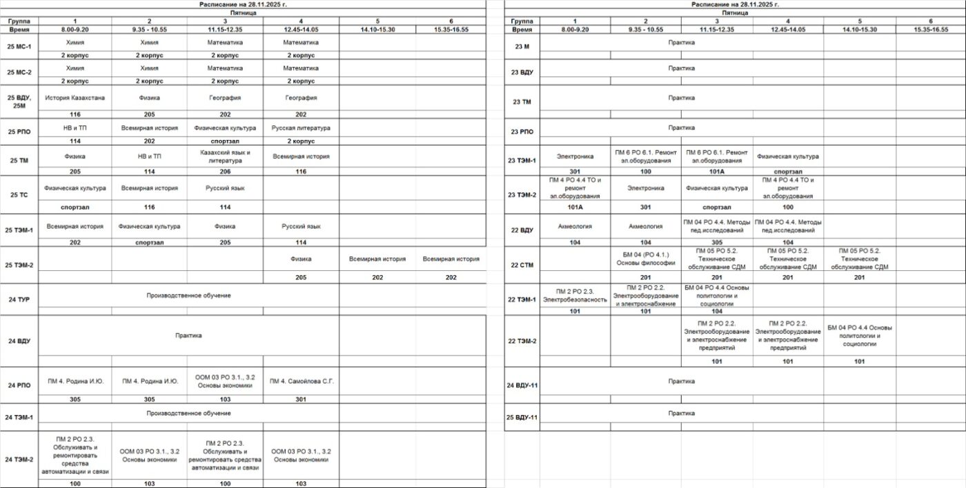 Очное отделение – расписание