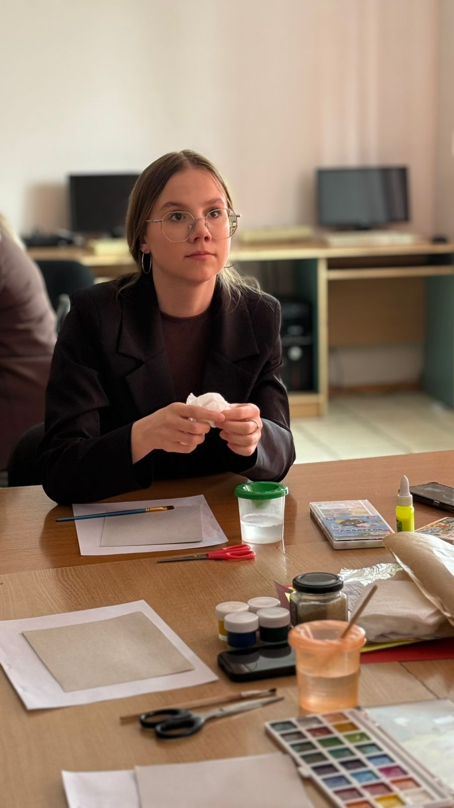 Целью мероприятия было познакомить с техникой создания фактурной картины и показать, как применять её в работе с детьми разного возраста – от 2 до 5 лет. В ходе мастер-класса студенты создавали картину «Весна. Тюльпаны» в смешанной технике, сочетая рисование красками с аппликацией из различных материалов: салфеток, ваты, фольги, наждачной бумаги и цветной бумаги. В результате участники освоили методику работы с фактурами, научились адаптировать её для разных возрастных групп и получили готовые творческие работы, которые в дальнейшем смогут использовать как образцы в своей профессиональной деятельности.