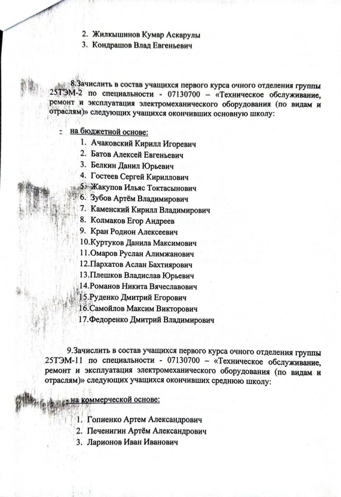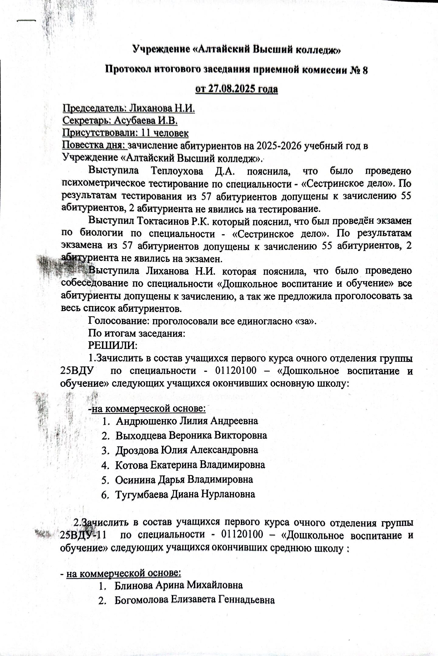 Протоколы заседания приемной комиссии от 27.08.2025 г.