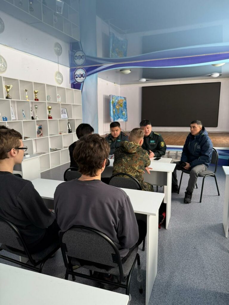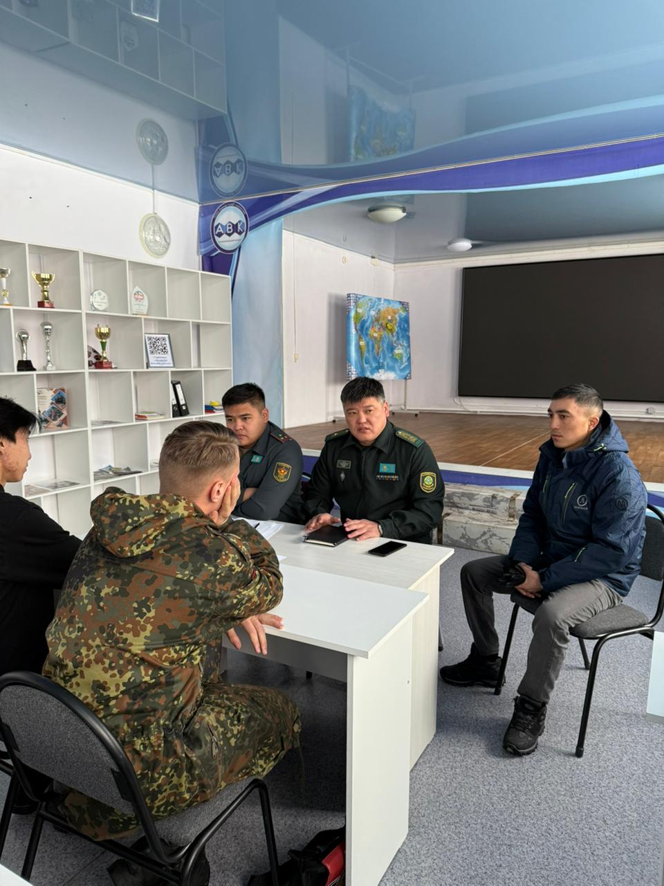 Сегодня в колледже была проведена агитационная работа с выпускниками, а также предварительное изучение кандидатов, заинтересованных в прохождении службы в Пограничной службе КНБ Республики Казахстан.